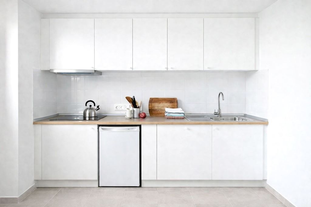 La cuisine est neuve et entièrement équipée (réfrigérateur, plaques vitro, hotte).