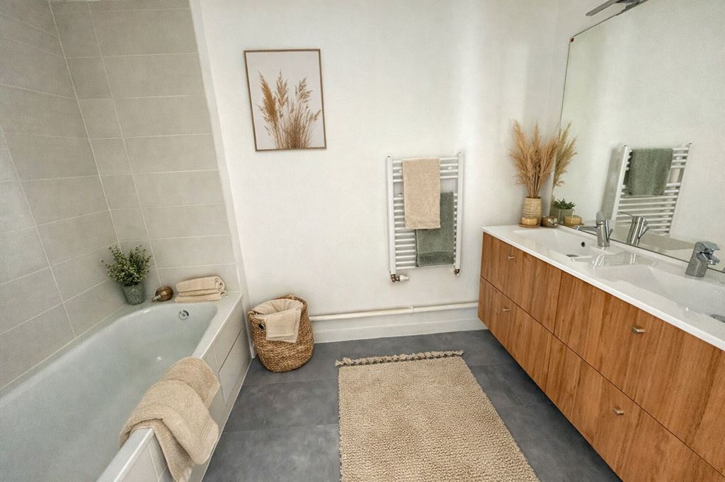 À Blagnac, grand appartement 2 pièces avec terrasse et parking sécurisé.
