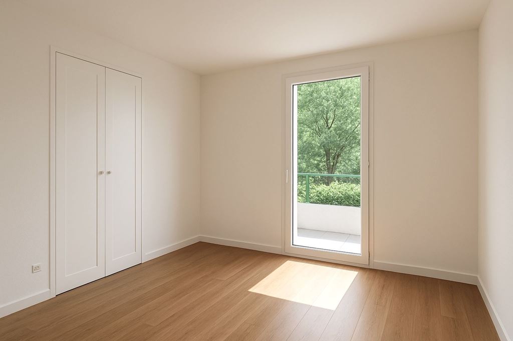Ce grand T3 de 80m2 dispose d'une entrée avec placard et d'une belle pièce de vie lumineuse de 37m2 ouvrant sur la première terrasse exposée au Sud et vue sur l'arrière de la résidence, au calme.